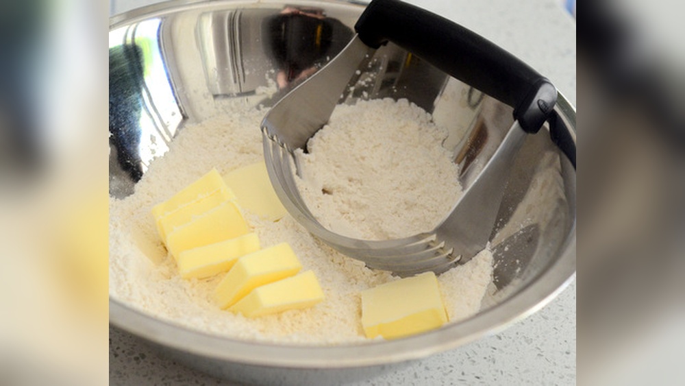 Pie crusts, biscuits, and scones become flaky when mixed with a pastry blender.